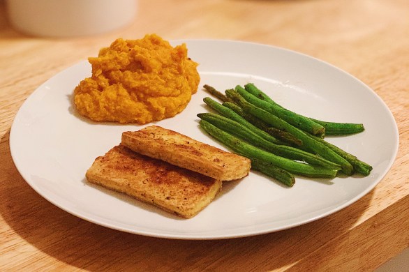 Vegan Sweet Potato & Carrot Mash with Tofu Steaks