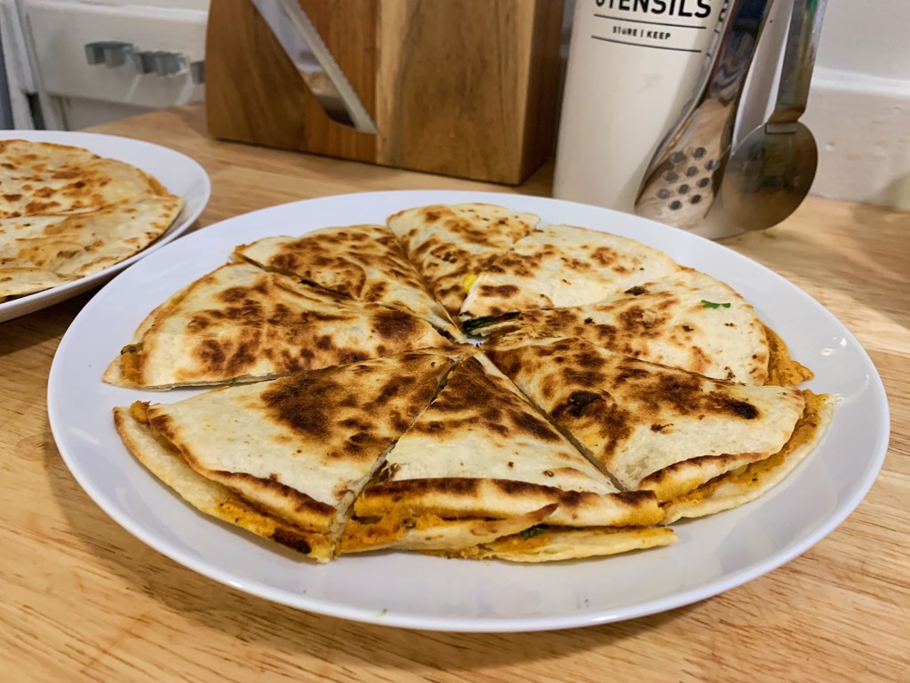 5. You may need to add another dollop of vegan butter to the pan before crisping the second quesadilla.